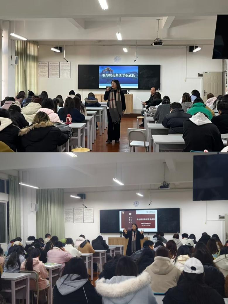 2025年12月30日—31日,外国语言文化学院面向2023级、2024级本科生开展“我与院长共话专业成长”主题活动,院长王英担任主讲人,2023级、2024级全体本科生参与活动。