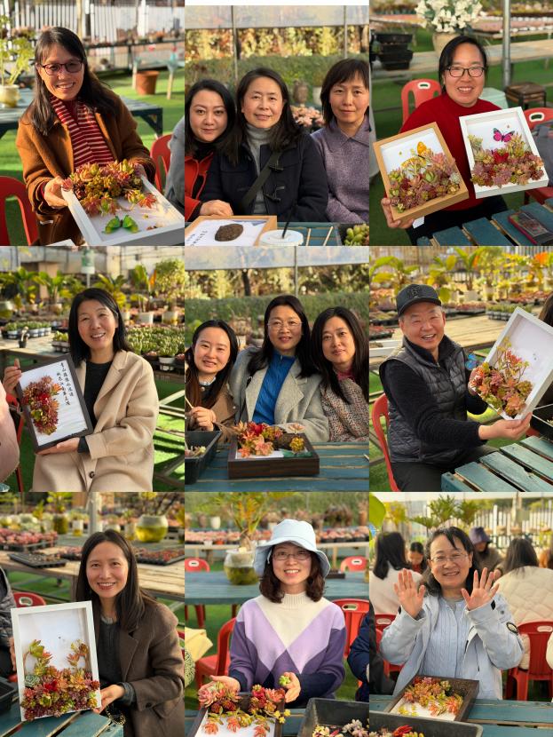 随后的多肉画框手工制作,将活动氛围推向高潮。工作人员详细讲解多肉种植养护知识后,老师们纷纷动手创作,选取心仪的多肉植株与装饰素材,精心搭配构图,每一幅作品都融入巧思、独具特色。当一个个精致的多肉画框完成,老师们脸上都洋溢着满足的笑容,定格下温馨美好的瞬间。